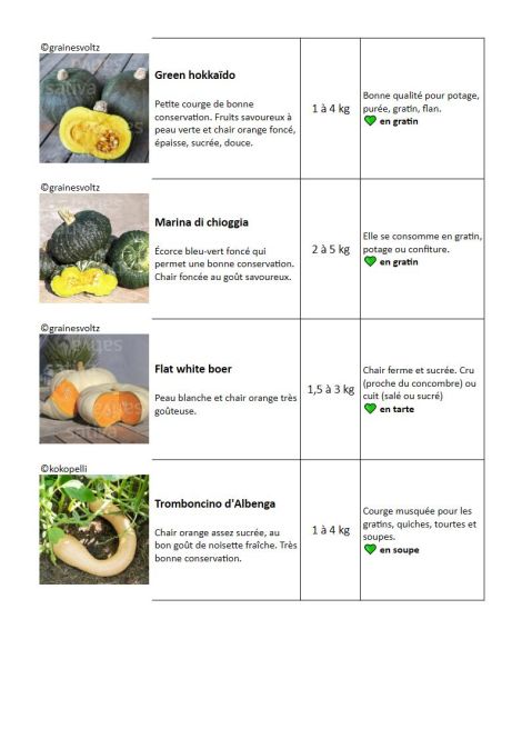 Voici un petit récapitulatif des variétés des courges que nous proposons !