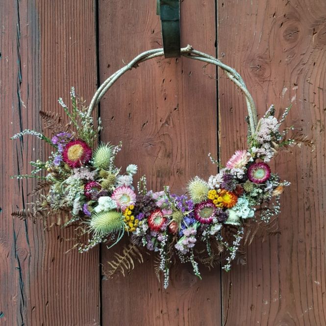 Après vous avoir proposé des beaux bouquets de fleurs fraîches, Marie vous a maintenant composé de très jolies couronnes de fleurs séchées.