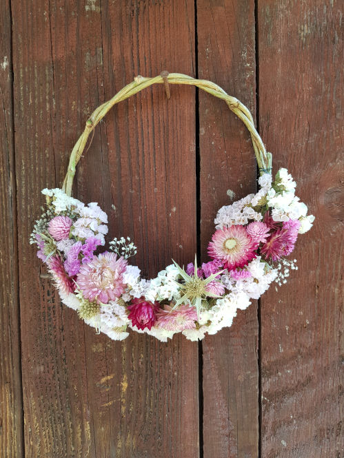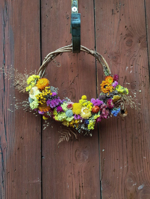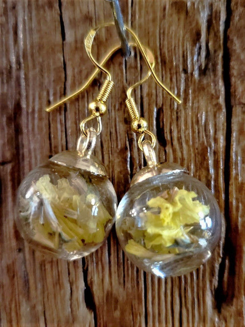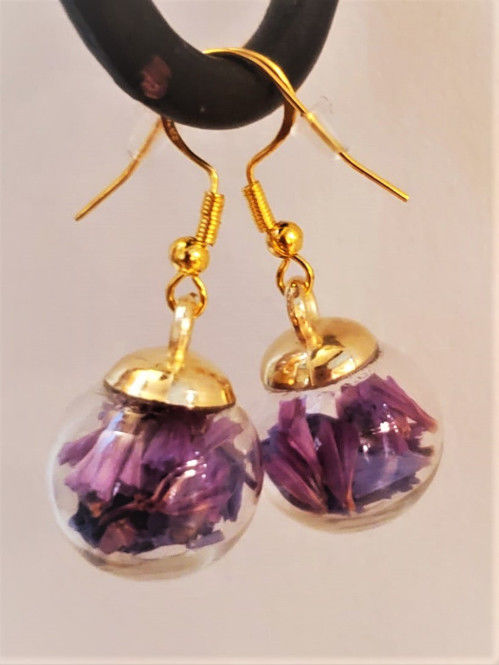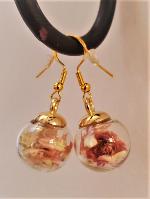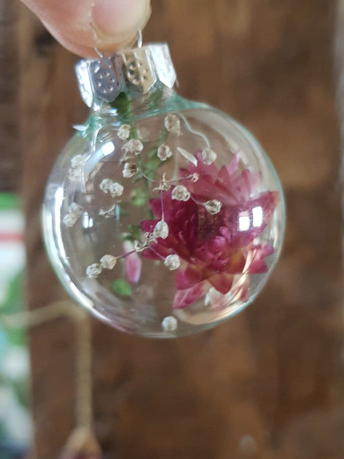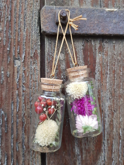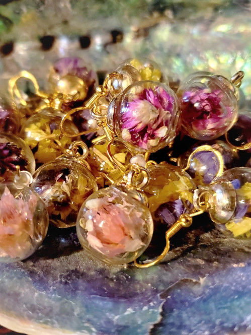 À la belle saison, nous séchons aussi nos fleur pour confectionner plein de petites décorations à offrir ou à s'offrir : couronnes, boules de Noël, fioles, boucles d'oreilles etc.